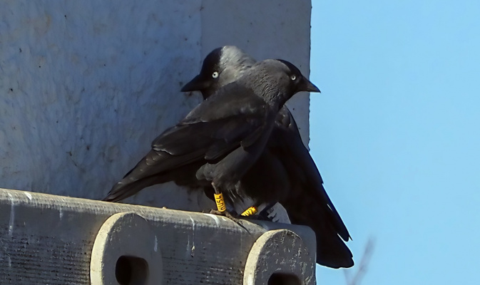 Dohlen gelb HU54 und HV23 – Foto: S. + I. Palfi am 3. März 2026, Neuliebler Senke