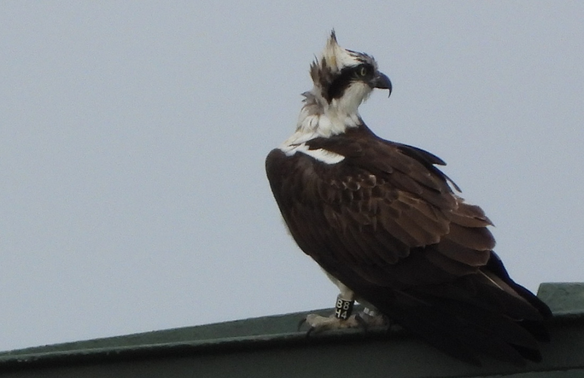 Fischadler schwarz BH84 – Foto: J. Kasper am 26. März 2026, Ödernitz, Feldflur W