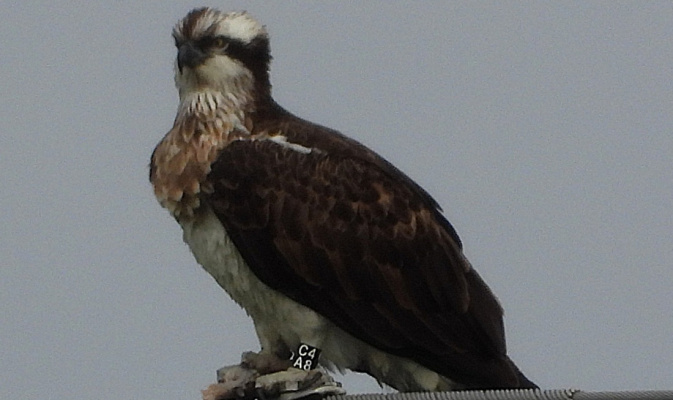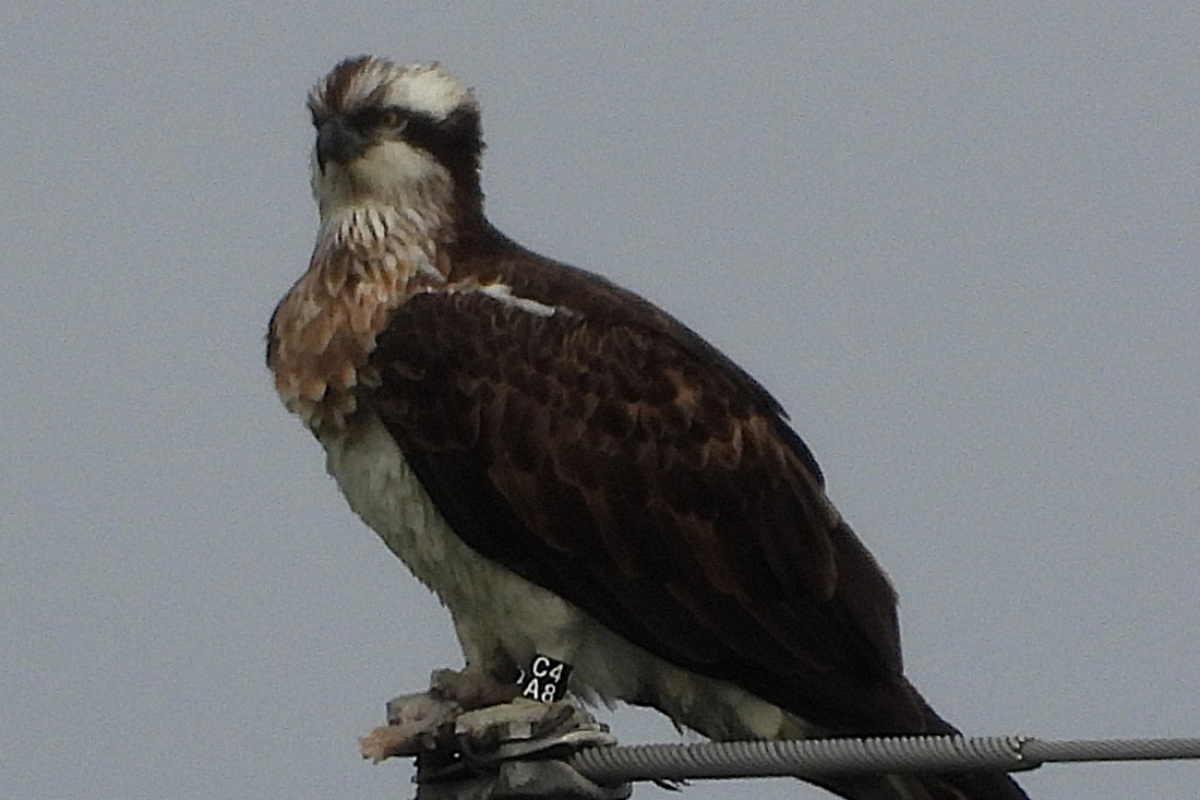 Fischadler schwart CA48 – Foto: J. Kasper am 26. März 2026, Ödernitz, Feldflur W
