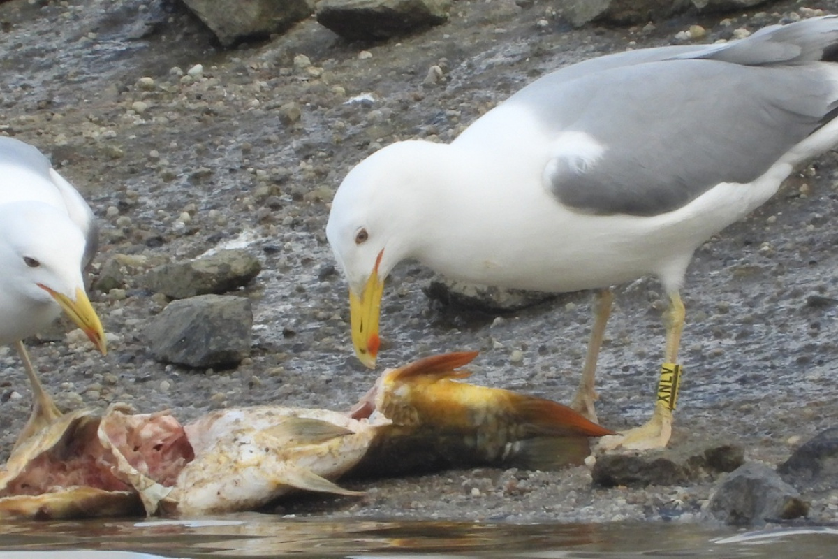 Großmöwe (unbestimmt) gelb XNLV – Foto: J. Kasper am 26. März 2026, Satzfischanlage Sproitz