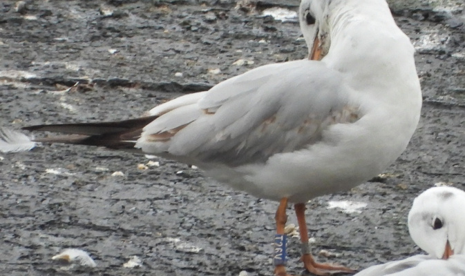 Lachmöwe blau T26V – Foto: S. + I. Palfi am 7. Februar 2026, Neiße in Görlitz