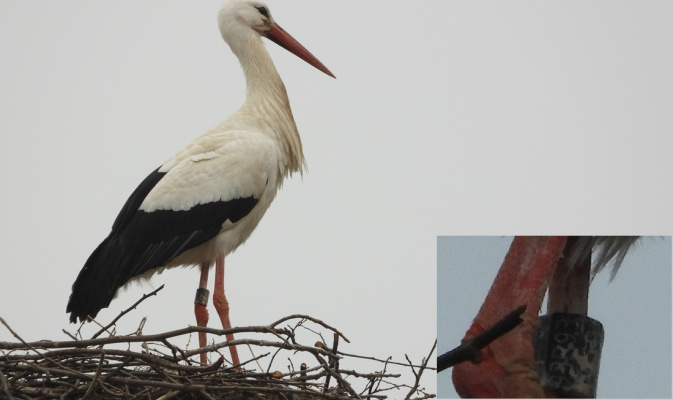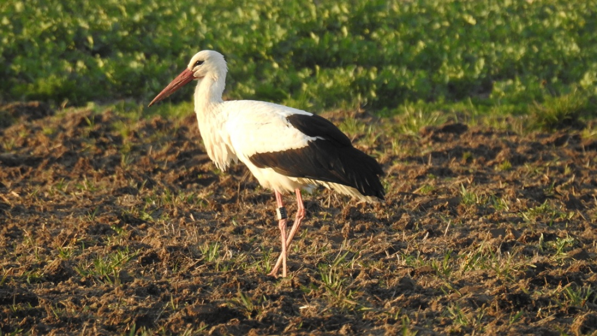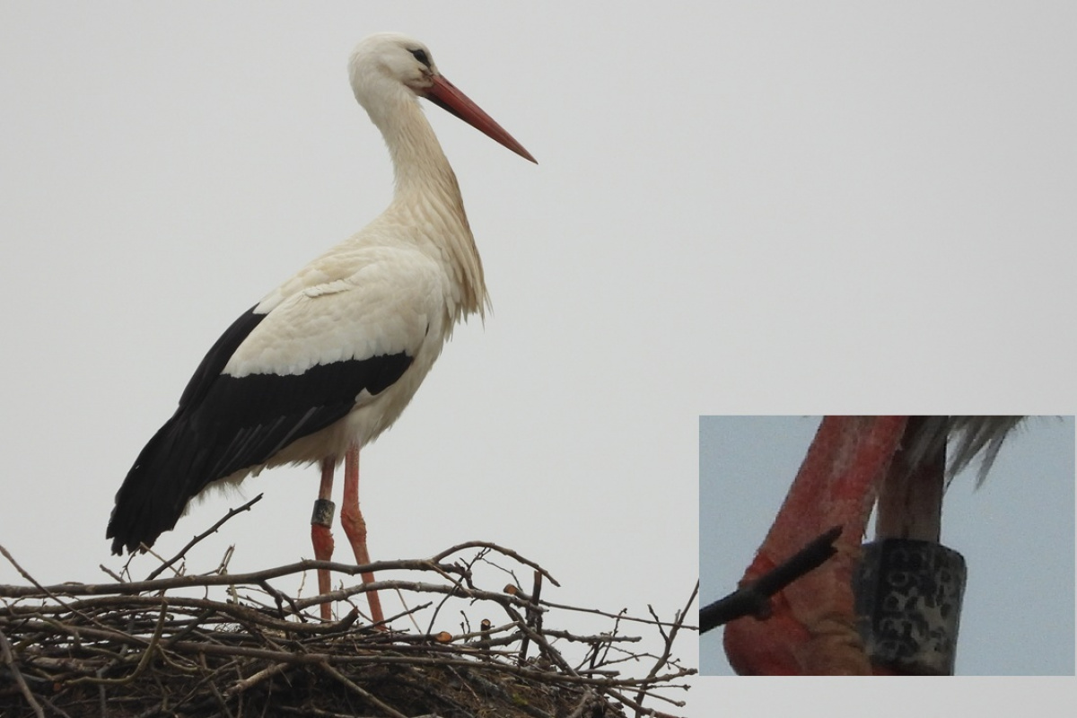 Weißstorch schwarz PLG 93P93 – Foto: J. Kasper am 1. April 2026, Daubitz, Ortslage